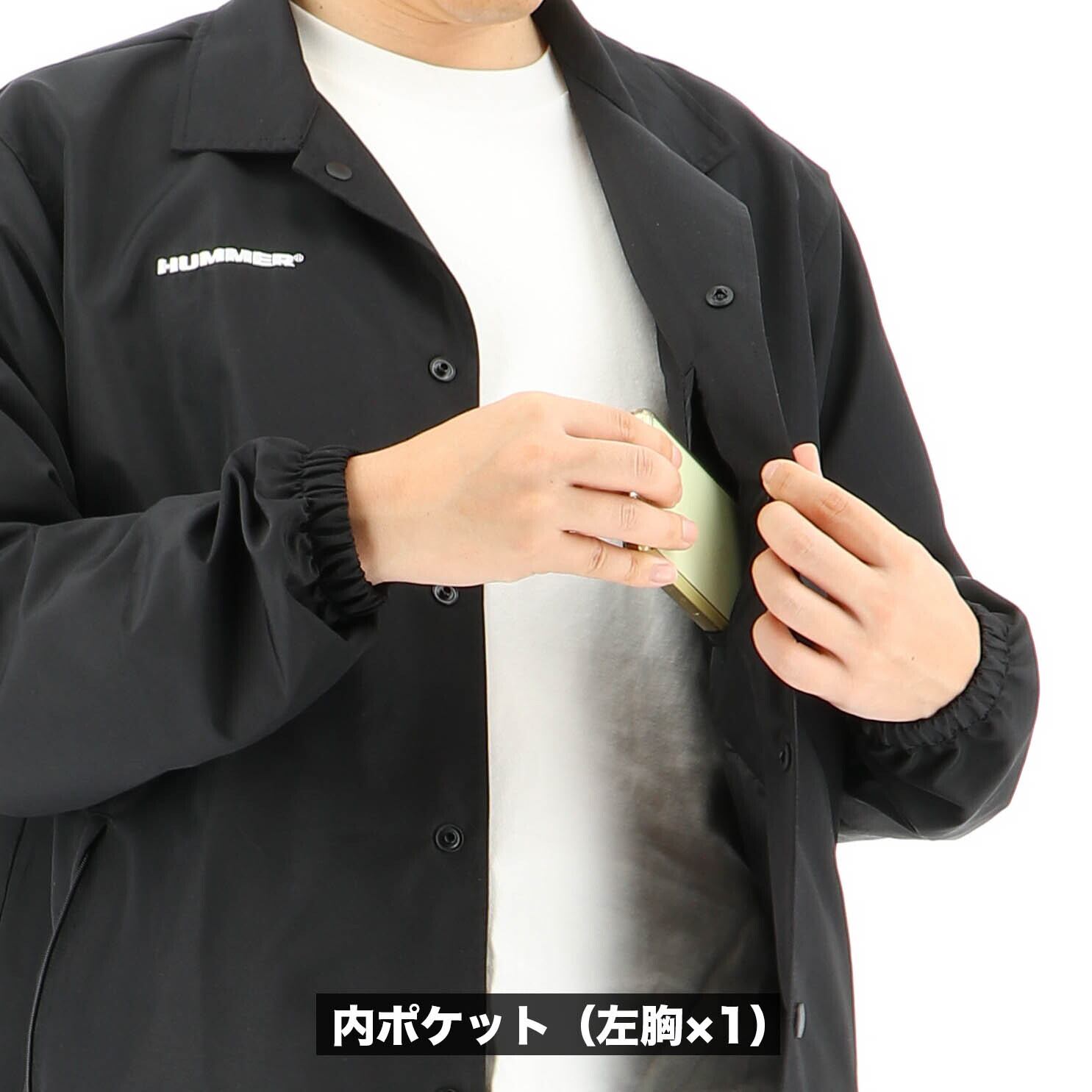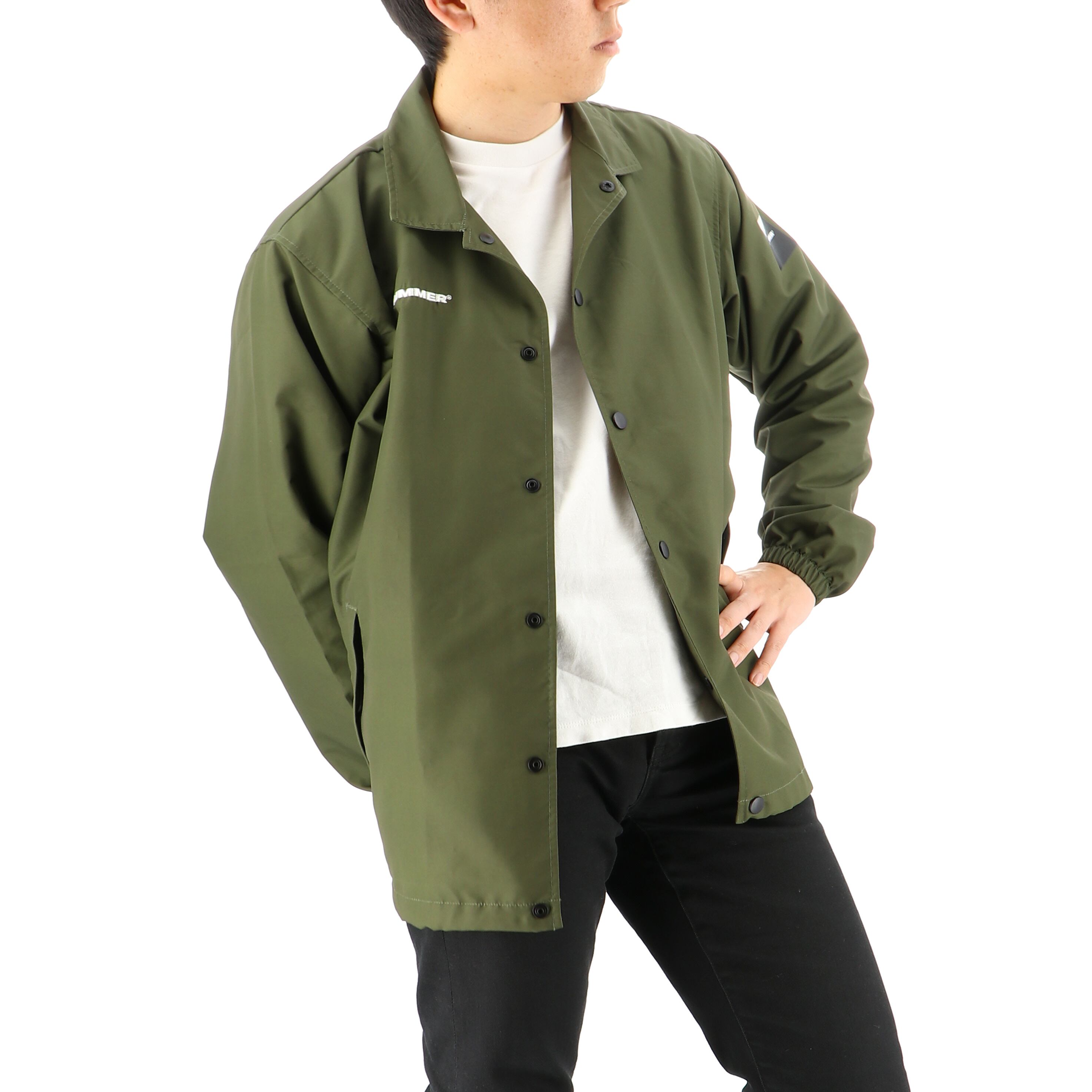 SUVブランド「HUMMER」をイメージした超はっ水コーチジャケット。軽量で耐久性があり、シワになりにくいナイロンタスラン素材を使用し、タウンユースからワークまで幅広く対応。弾き続けるプレミアム超はっ水「Ei:コーテイング」を採用し、防水ウェアに負けない抜群のはっ水性を発揮。